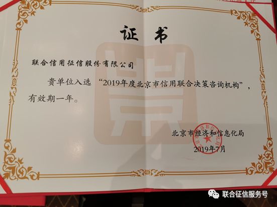 联合信用征信股份有限公司参与了大会筹备工作,并作为北京市经济信息化局评定的“2019年度北京市信用联合决策咨询机构”以及天津市发展改革委推荐的信用服务机构,受邀出席大会。根据近期印发的《关于成立北京市社会信用标准化技术委员会的函》(京经信函〔2019〕345号),联合征信母公司联合信用管理有限公司成为首届北京市信用标准技术委员会委员。